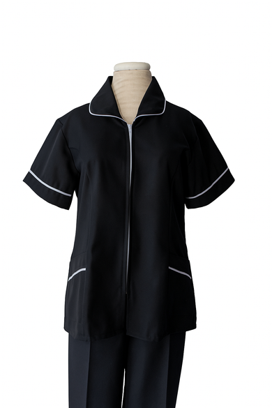 Diseñada y confeccionada en Chile con Tela Trevira, la cual ofrece una alta resistencia, evitando irritación en la piel gracias a su agente microbiano y de fácil cuidado (planchar y lavar). Es una tela elasticada ideal para uniformes de trabajo que buscan durabilidad, flexibilidad y frescura.
